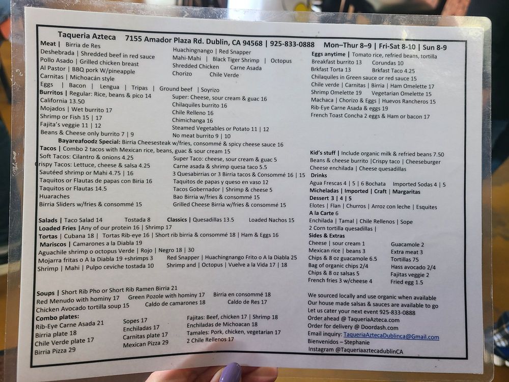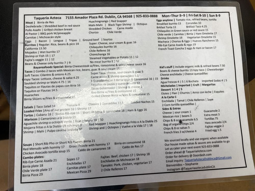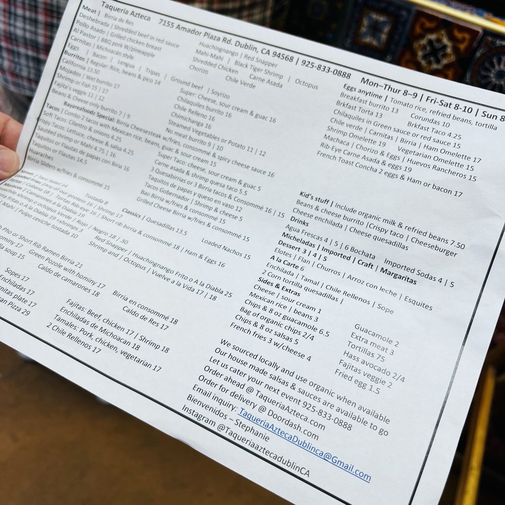 Taqueria Azteca Menu